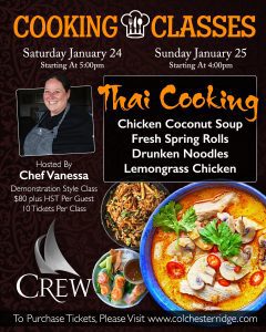 Explore bold Thai flavours in this class led by Chef Vanessa! On Saturday, January 24, 2026, learn to make Chicken Coconut Soup, Fresh Spring Rolls, Drunken Noodles, and Lemongrass Chicken