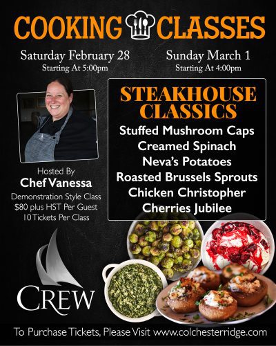 Join Chef Vanessa for a Sunday afternoon deep dive into rich, nostalgic steakhouse favourites. On March 1 at 4:00 PM, guests will enjoy a guided demonstration featuring classic sides, bold flavours, and a signature steakhouse-style main—Chicken Christopher—finished with the timeless dessert Cherries Jubilee. Seating is limited to just 10 guests, making this an intimate and hands-on culinary learning experience.
